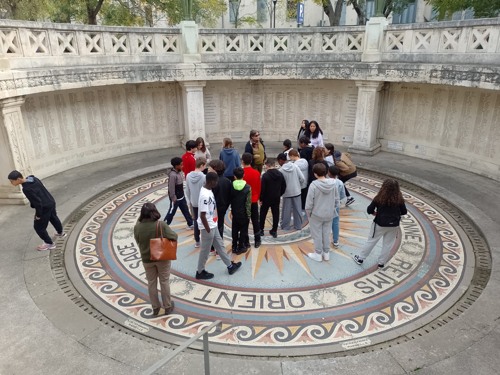 Dans le cadre des commémorations de l'armistice du 11 novembre 1918, et pour ne pas oublier le sacrifice de nos aïeux, les élèves de la Classe Défense du collège Feuchères ont bénéficié d'une visite exceptionnelle : celle du monument aux morts de Nîmes.