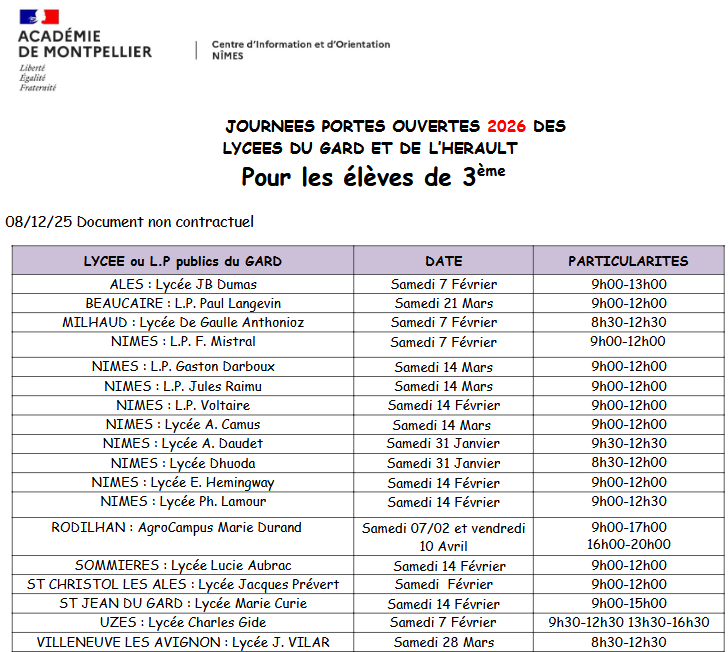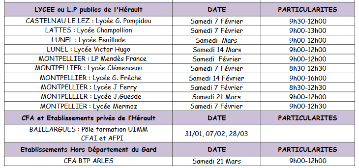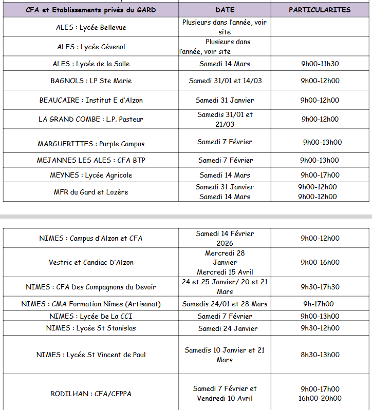 JOURNEES PORTES OUVERTES ET MINI STAGES -ANNEE 2026 LYCEES OU LYCEES PROFESSIONNELS DU GARD ET DE L'HERAULT