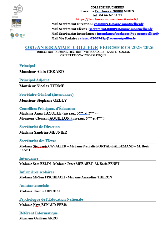ORGANIGRAMME ADMINISTRATION 2025 2026